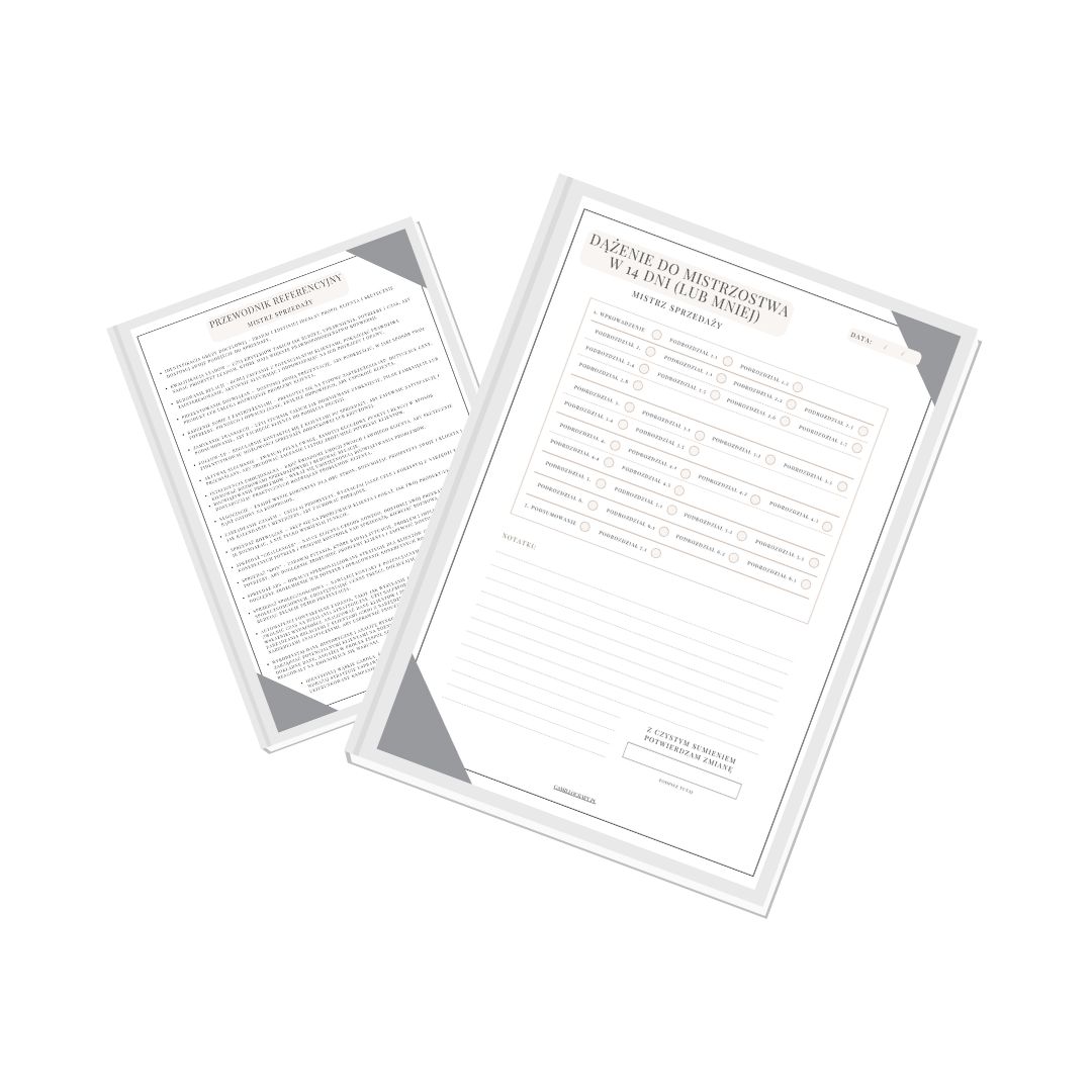 Dodatkowo otrzymasz przewodnik referencyjny. To cenne narzędzie pozwala na szybkie sprawdzenie kluczowych koncepcji i najważniejszych informacji na temat umiejętności sprzedażowych.